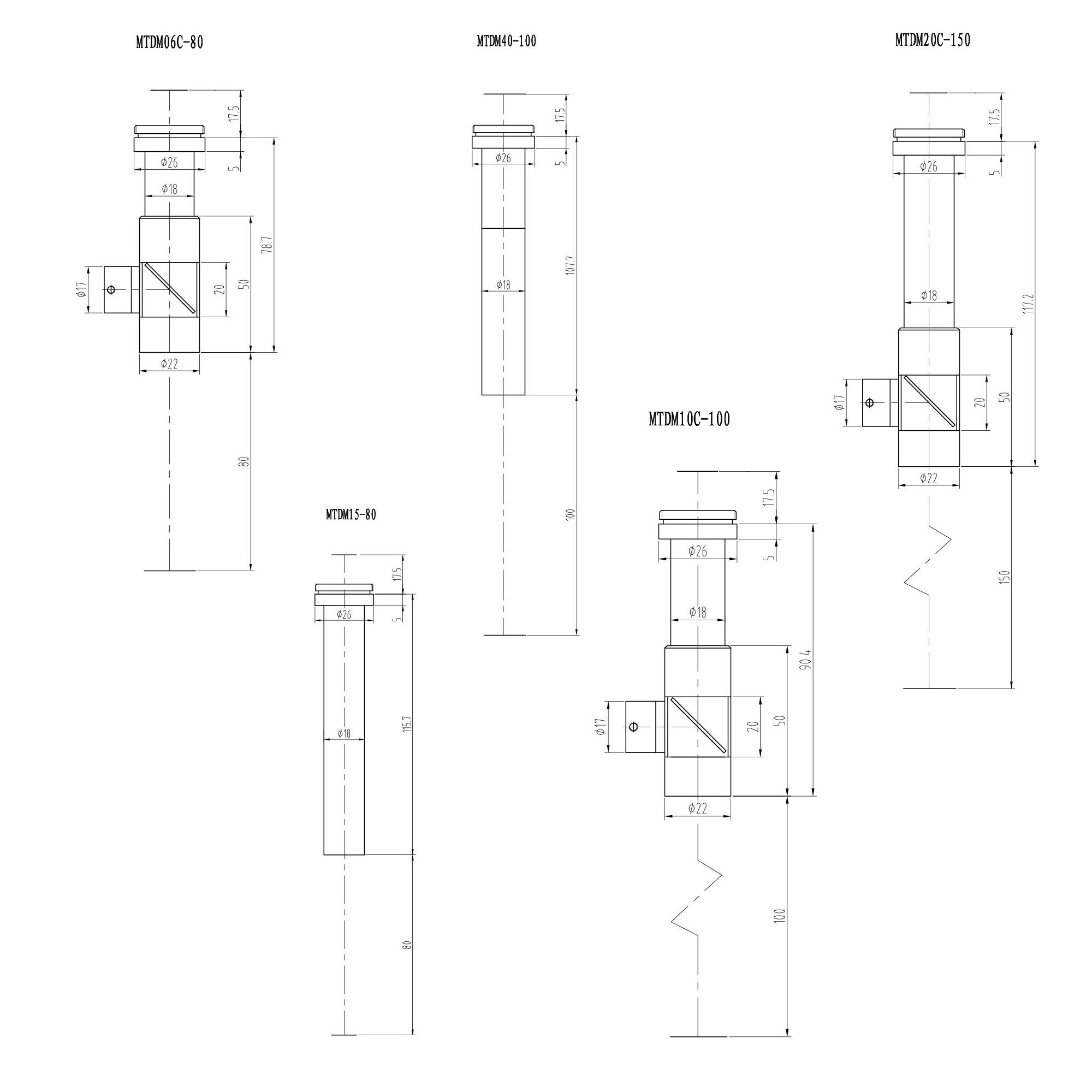 1. MTDM系列單筒視頻顯微物鏡型號(hào)規(guī)格匯總(工作距離為80mm):
