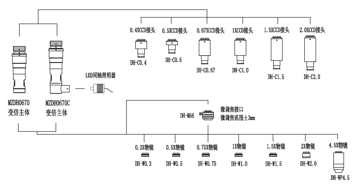 ● 可選多種倍率CCD接頭和多種倍率物鏡,同軸照明、環形燈照明